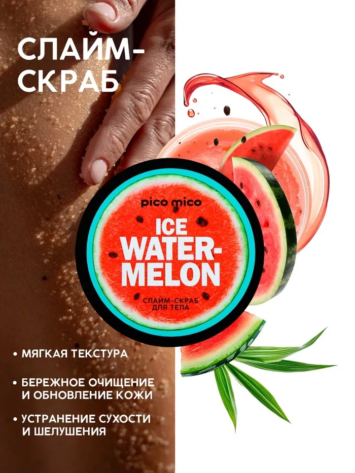 Скраб-слайм для тела Ice watermelon, питание и увлажнение, с ароматом арбуза, 250 г, PICO MICO