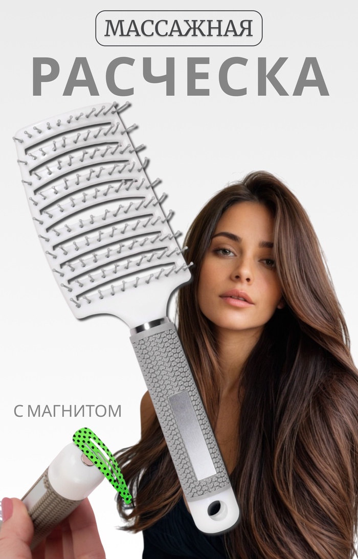 Расчёска массажная, с магнитом, прорезиненная ручка, 7.5×25.5 (±1) см, серая