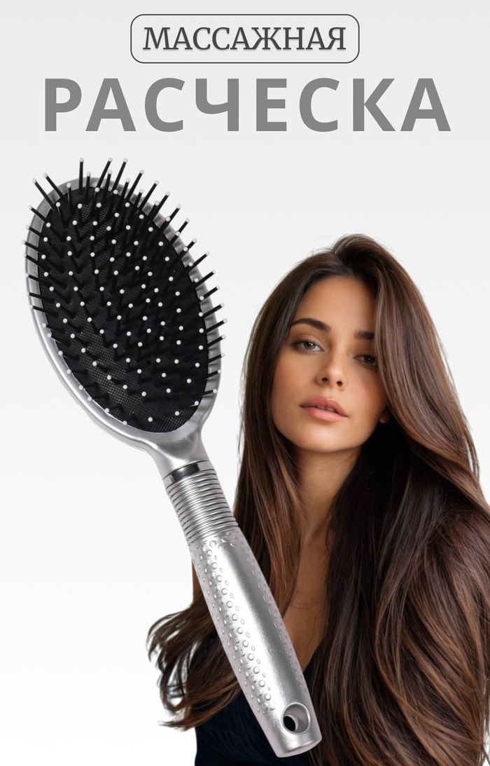 Расчёска массажная, 8×25 (±1) см, серебристая