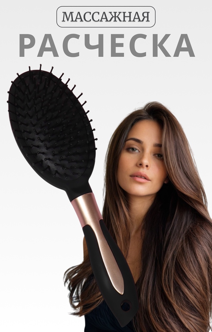 Расчёска массажная, прорезиненная ручка, 8×24 (±1) см, цвет чёрный