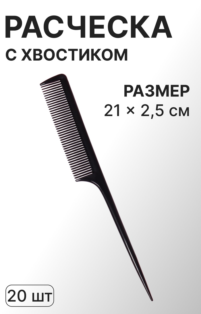 Расчёска с хвостиком, 21×2.5(±1) см, фасовка 20 шт., чёрная