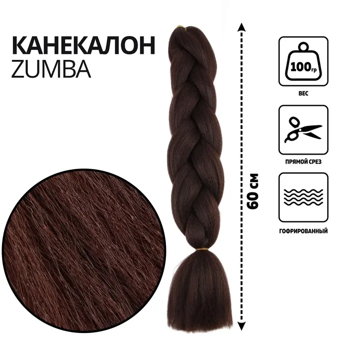 ZUMBA Канекалон однотонный, гофрированный, 60 см, 100 г, шоколадный(#AY4)