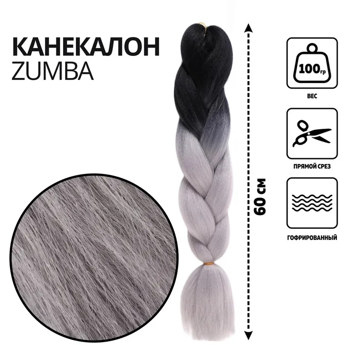 ZUMBA Канекалон двухцветный, гофрированный, 60 см, 100 г, чёрный, пепельный(#BY33)