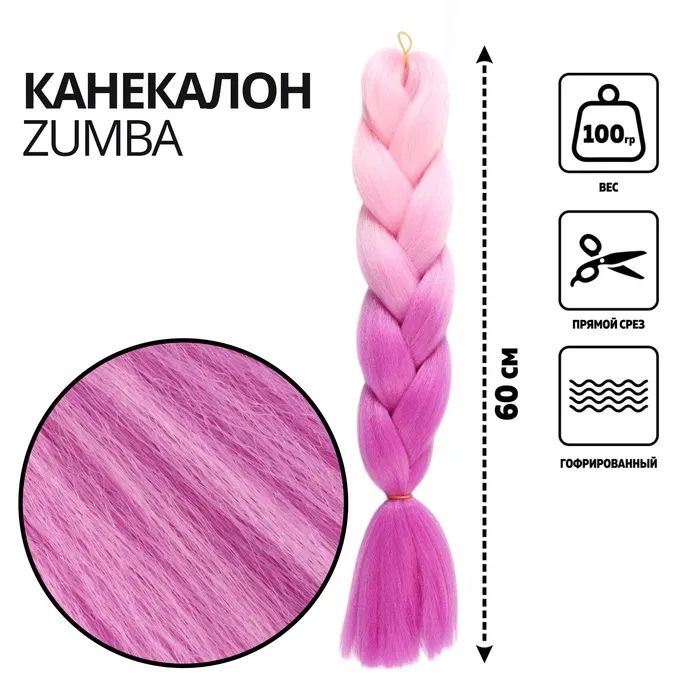ZUMBA Канекалон двухцветный, гофрированный, 60 см, 100 г, светло-розовый, светло-фиолетовый(#BY39)