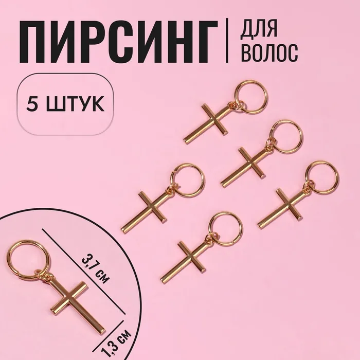 Пирсинг для волос «Крест», 3.7×1.3 см, 5 шт., цвет золотистый