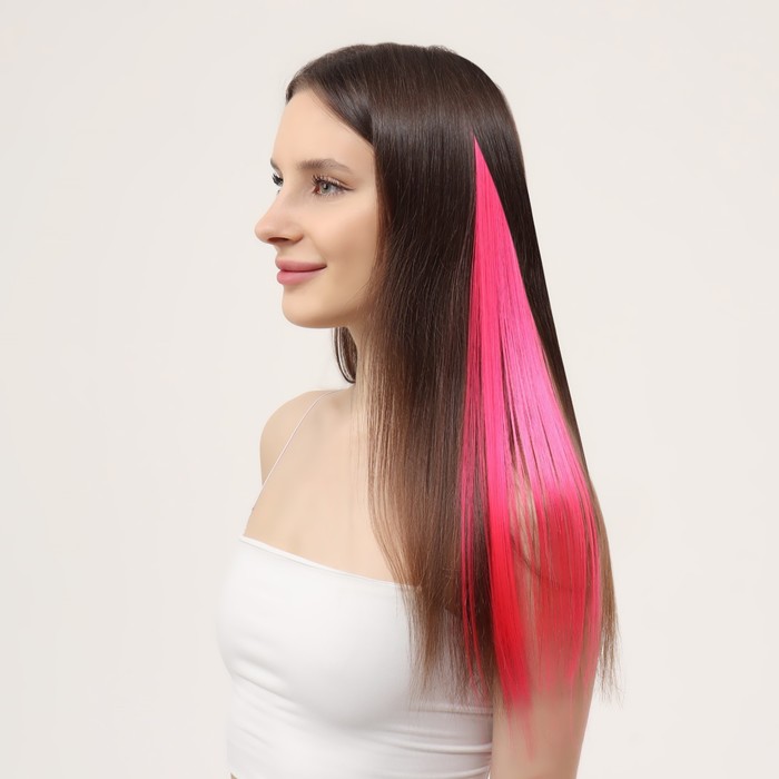 Локон накладной, прямой волос, на заколке, 50 см, 5 гр, цвет фуксия