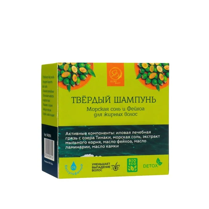 Твердый шампунь «Морская соль и Фейхоа» для жирных волос, 100 г