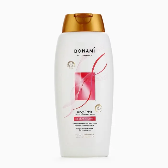 Шампунь для волос с маслом жожоба и провитамином В5, оъем и сила, 750 мл, BONAMI