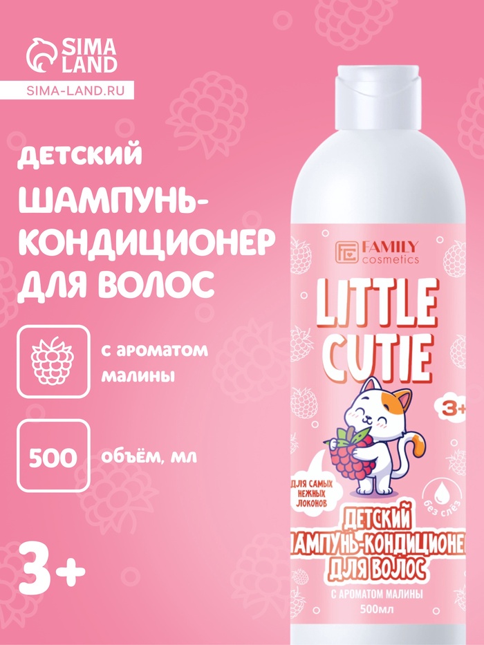 Детский шампунь-кондиционер для волос LITTLE CUTIE аппетитная малинка, 500 мл