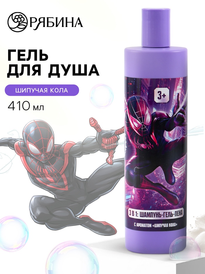 Детский шампунь-гель-пена 3в1, аромат шипучая кола, 410 мл, Человек паук