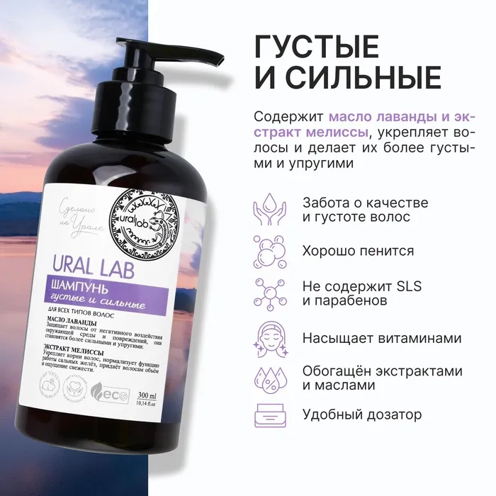 Шампунь для волос с маслом лаванды и экстрактом мелиссы, густые и сильные, 300 мл, ECO LAB by URAL LAB