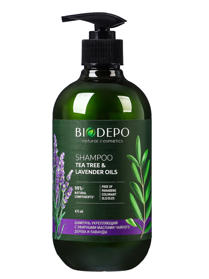 Шампунь для волос бессульфатный Biodepo укрепляющий с маслами чайного дерева и лаванды, 475 мл