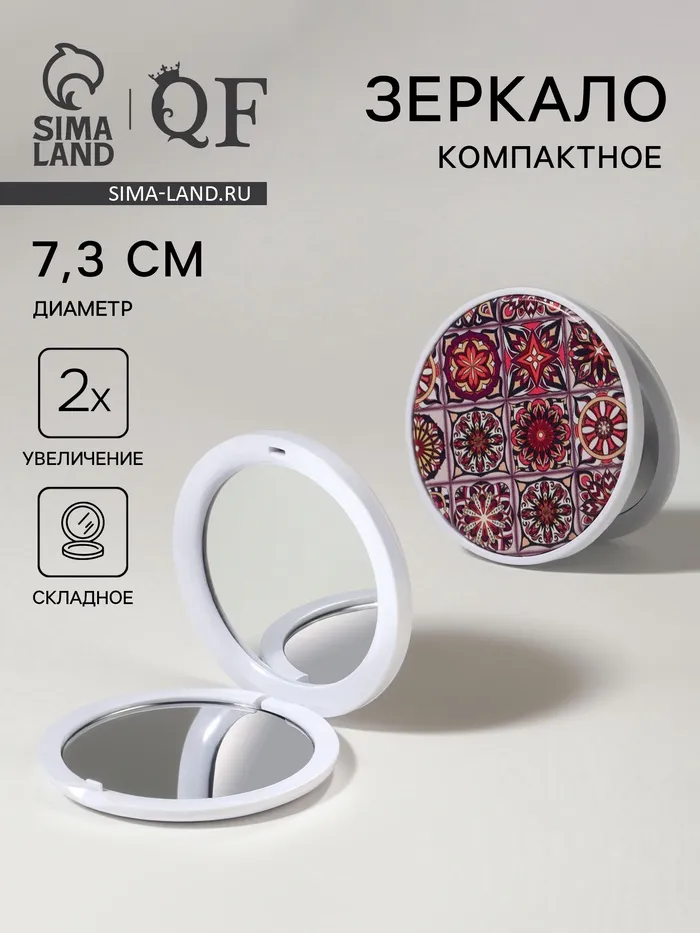 Зеркало складное «Витраж», d=7.3 см, с увеличением х2, красное