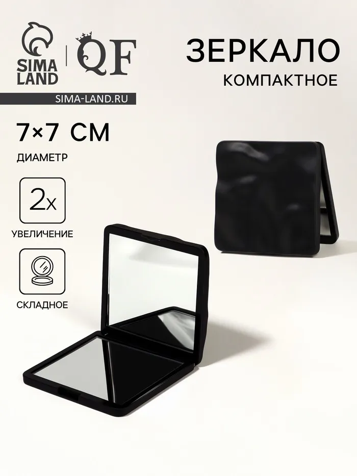 Зеркало складное «Волна», 7×7 см, с увеличением х2, чёрное