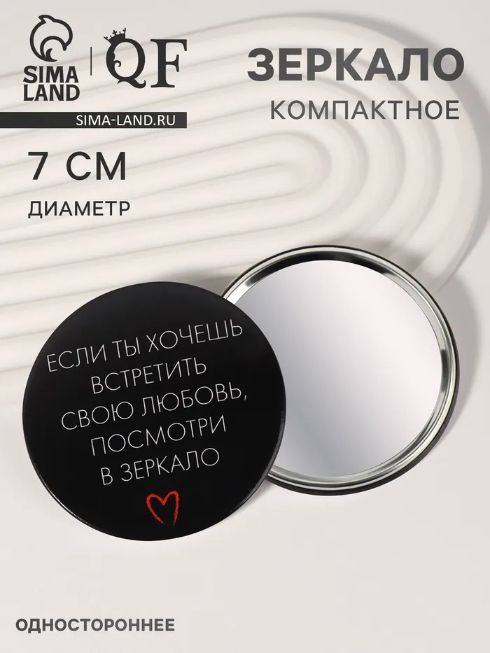 Зеркало карманное «Любовь», d=7 см, чёрное