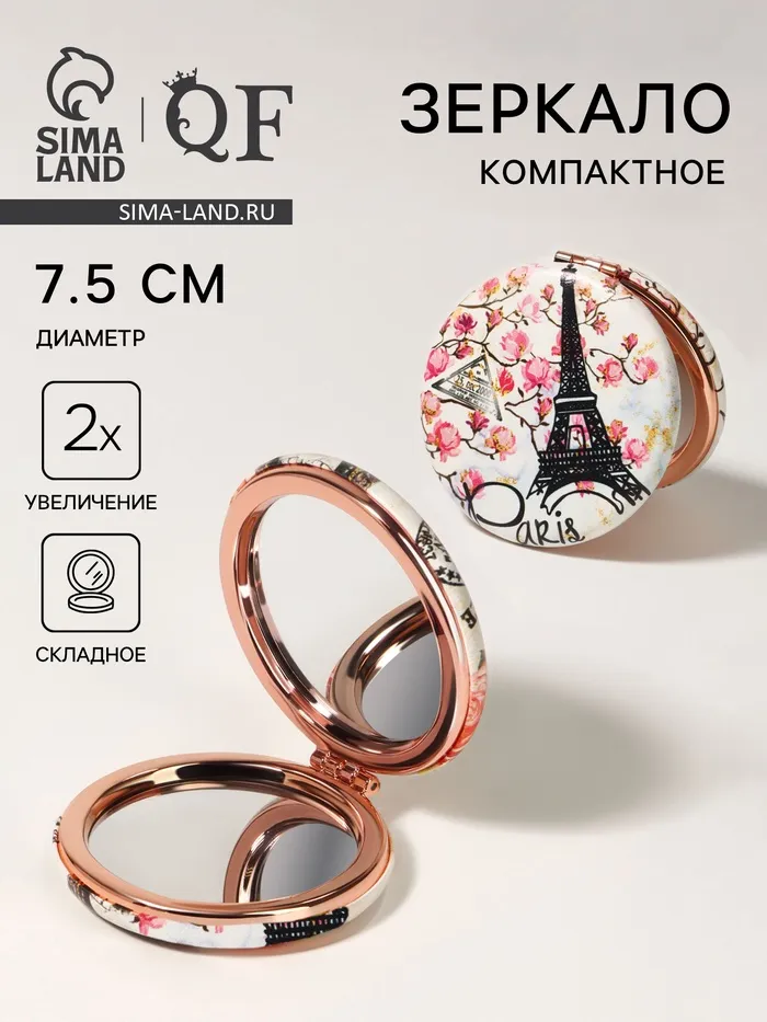 Зеркало складное «Париж», d=7.5 см, с увеличением х2, искусственная кожа, белое