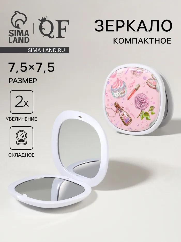 Зеркало складное «Романтика», 7.5×7.5 см, с увеличением х2, розовое