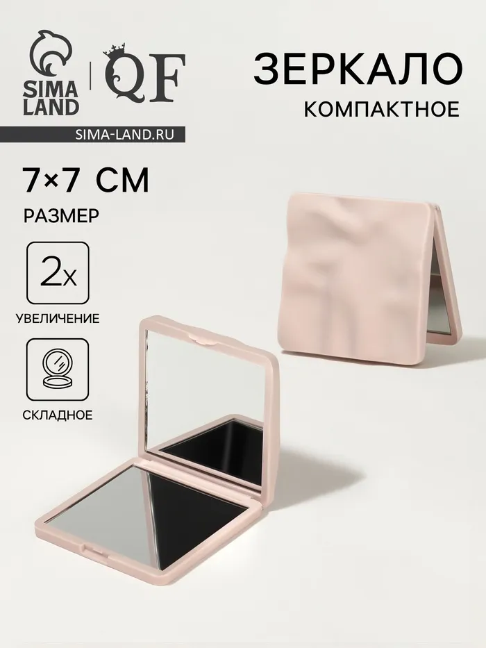 Зеркало складное «Волна», 7×7 см, с увеличением х2, бежевое