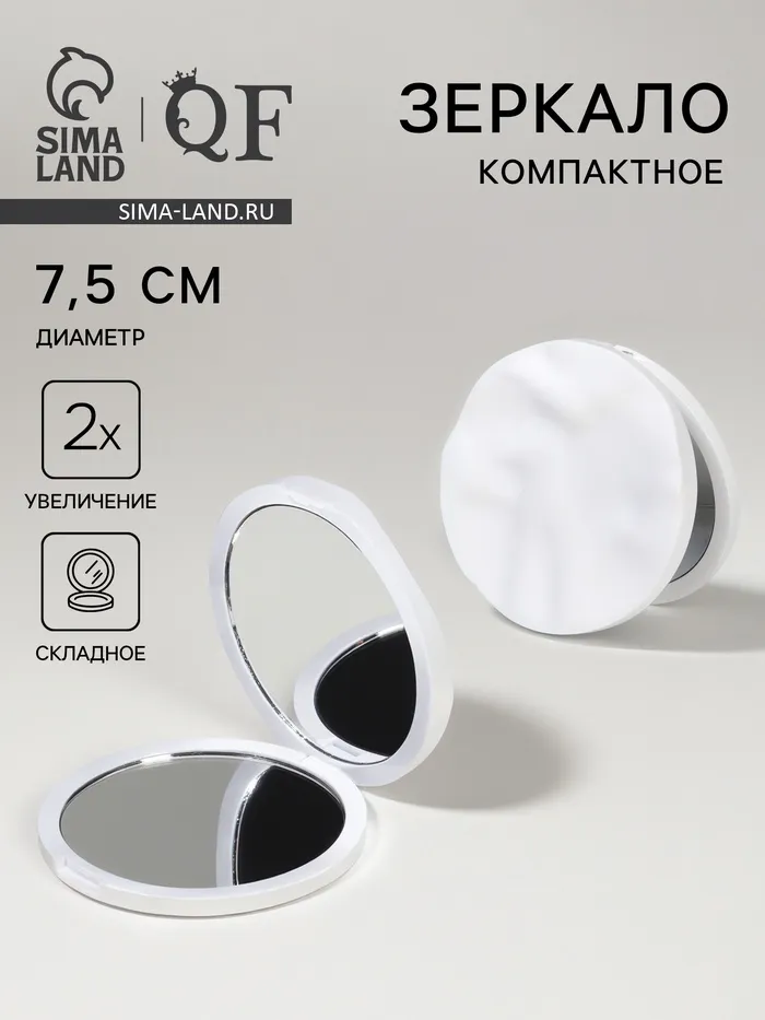 Зеркало складное «Волны», d=7.5 см, с увеличением х2, матовое, белое