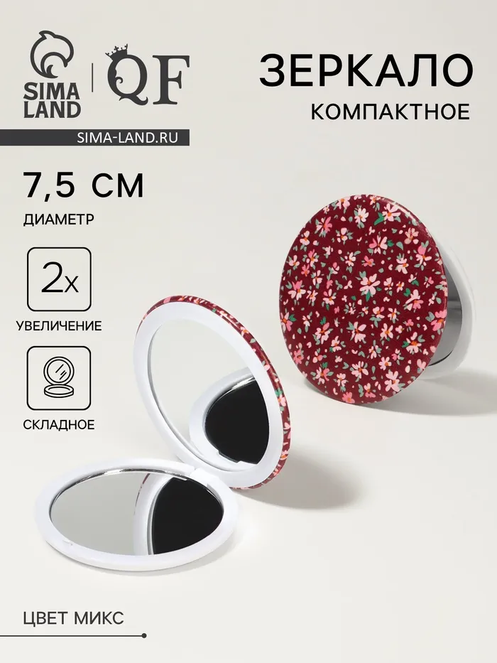 Зеркало складное «Цветочная поляна», d=7.5 см, с увеличением х2, МИКС