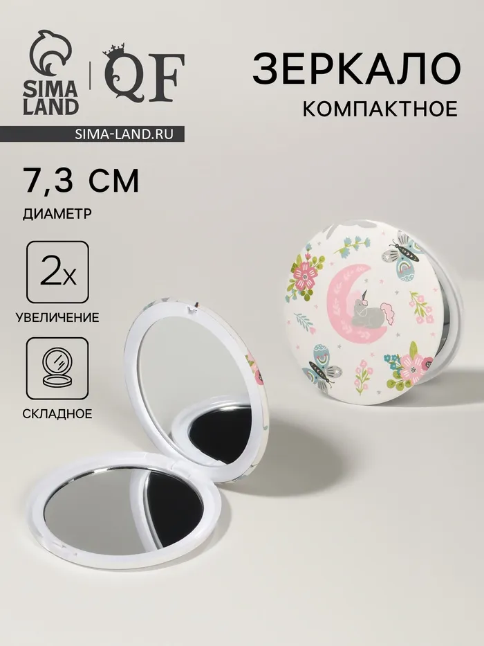Зеркало складное «Единороги», d=7.3 см, с увеличением х2, белое