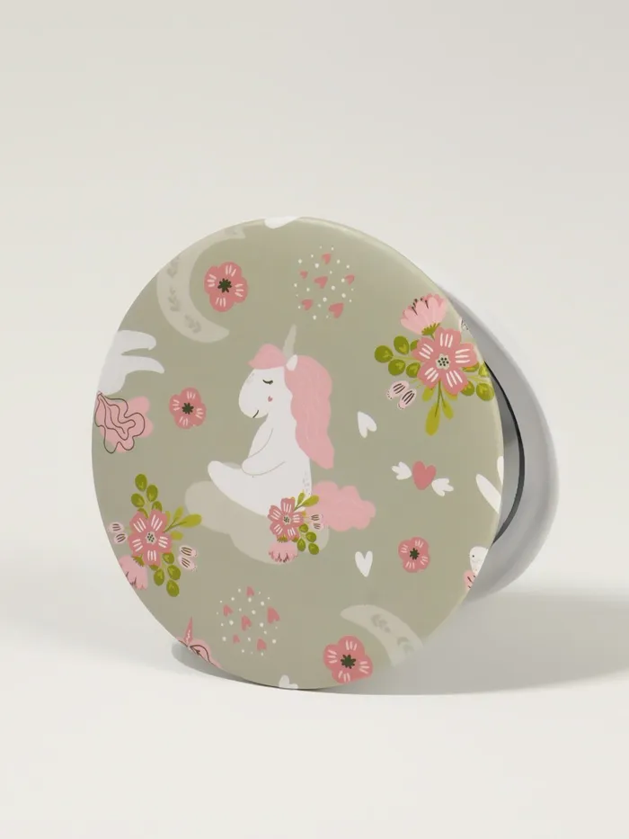 Зеркало складное «Единороги», d=7.5 см, белое, розовое