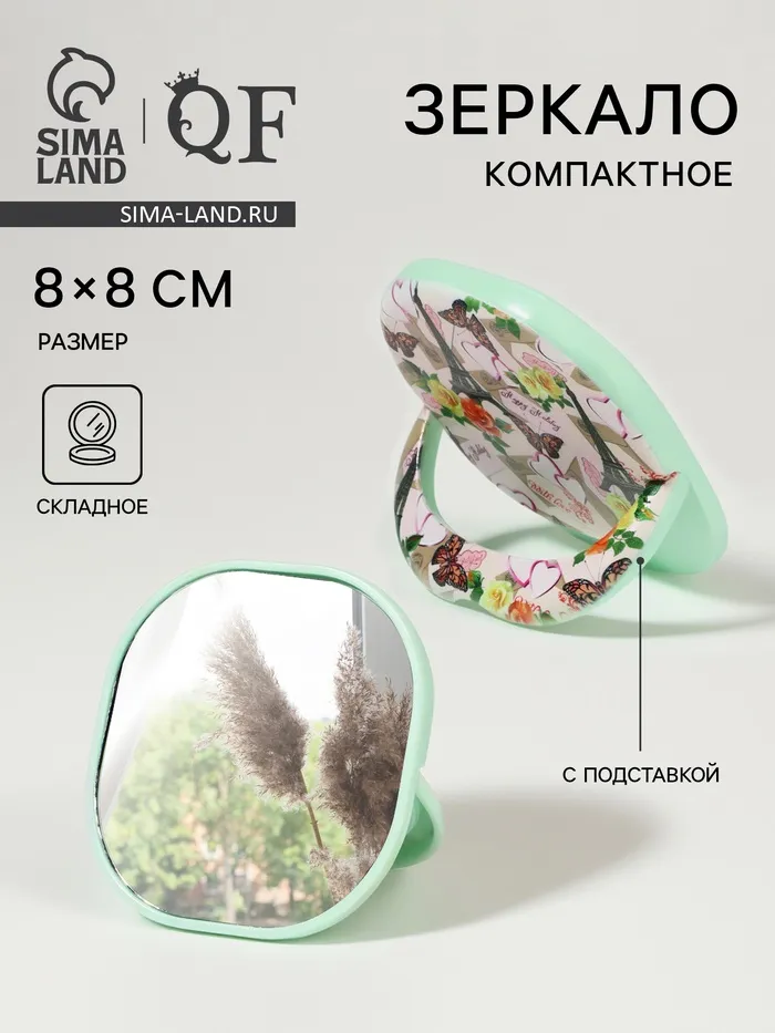 Зеркало карманное «Узор», с подставкой, 8×8 см, зелёное