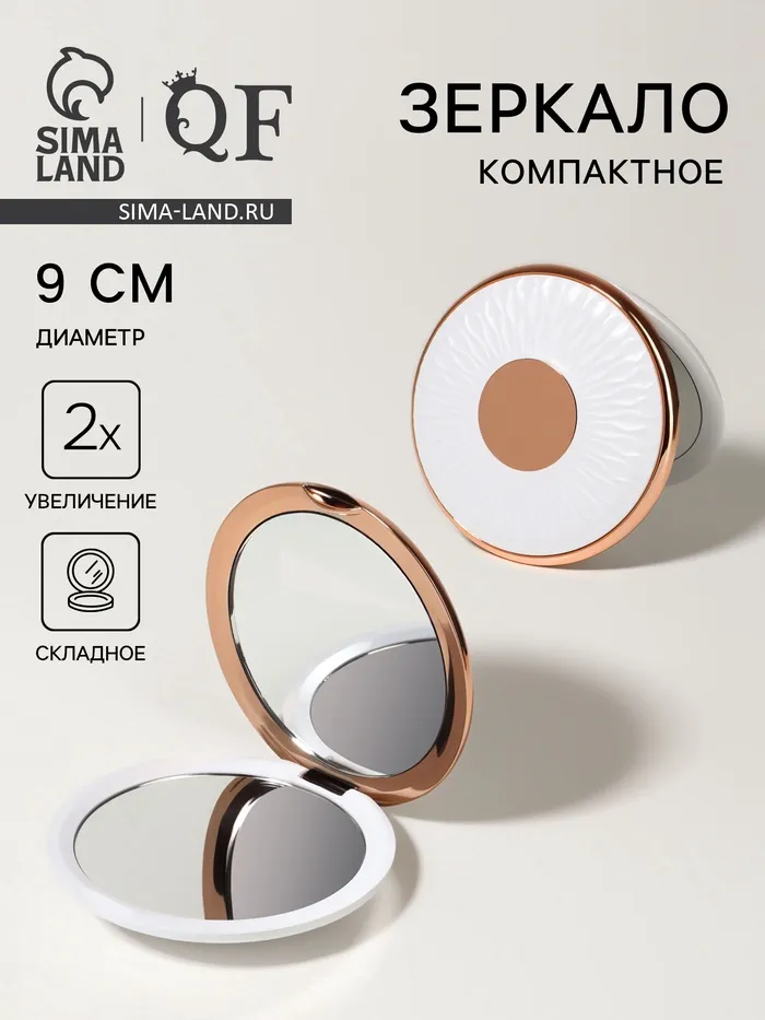 Зеркало складное «Узор», d=9 см, с увеличением х2, цвет белый, розовое золото