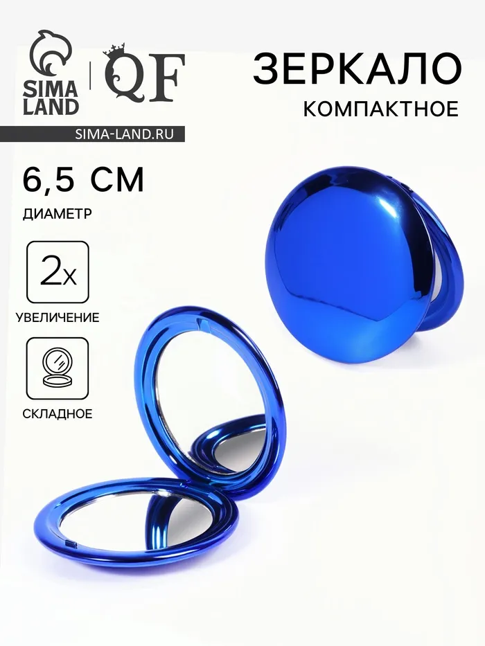 Зеркало складное «Металлик», d=6.5 см, с увеличением х2, синее