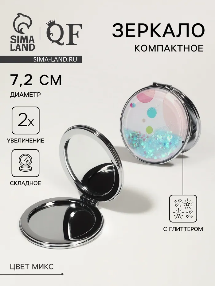 Зеркало складное «Круги», d=7.2 см, с увеличением х2, МИКС