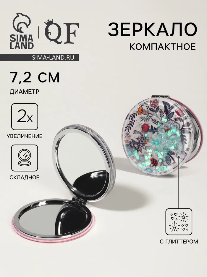 Зеркало складное «Листья», d=7.3 см, с увеличением х2, белое