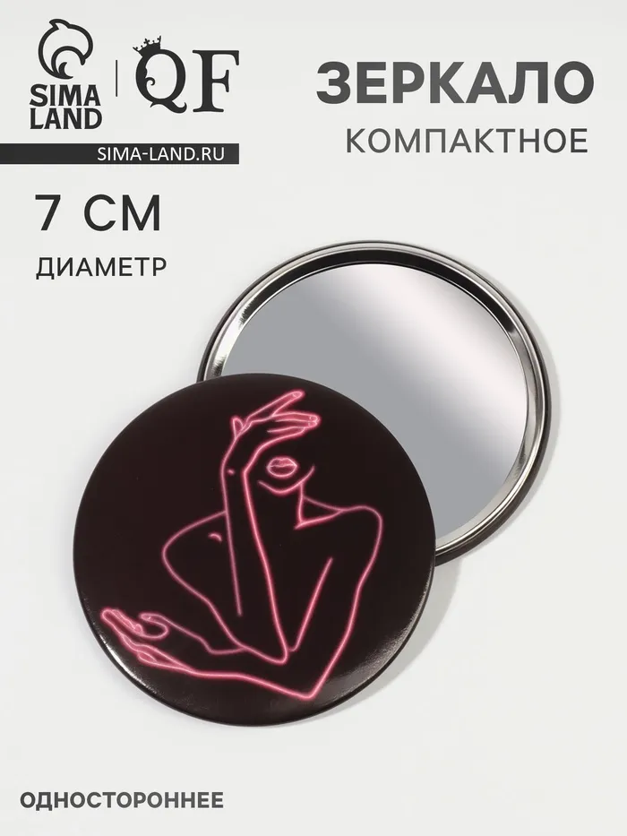 Зеркало карманное «Силуэт», d=7 см, PVC - коробка, чёрное