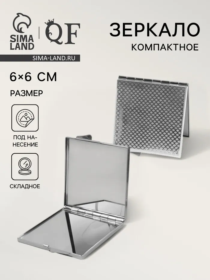 Зеркало складное, 6 × 6 см, цвет серебристый