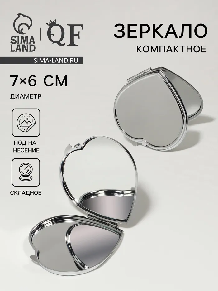 Зеркало складное, 7 × 6 см, цвет серебристый
