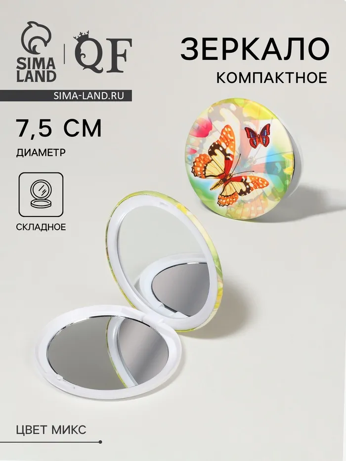 Зеркало складное «Бабочки», d = 7,5 см, рисунок МИКС