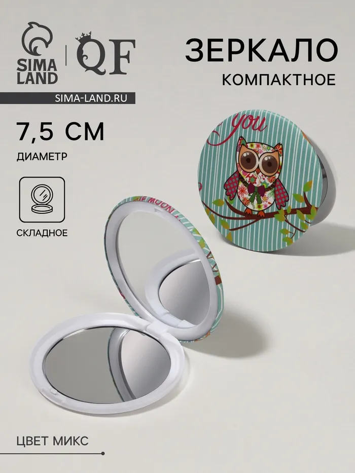 Зеркало складное «Совы», d = 7,5 см, рисунок МИКС