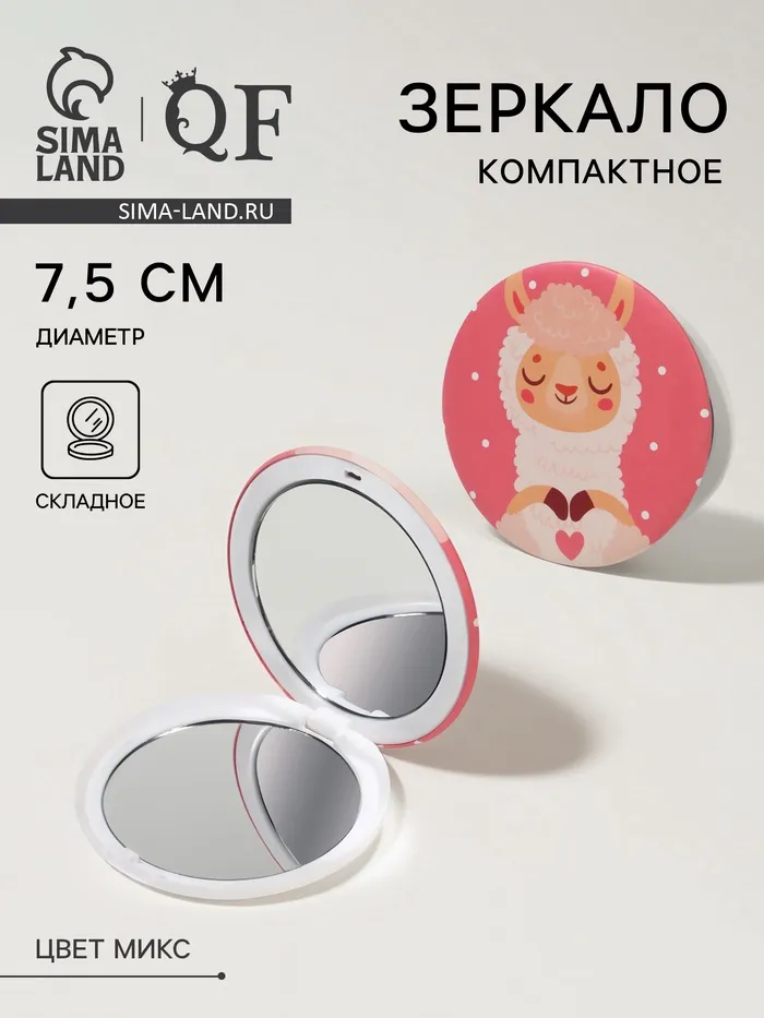 Зеркало складное «Ламы», d = 7,5 см, рисунок МИКС