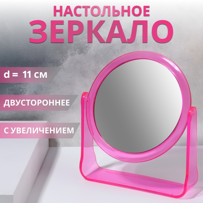 Зеркало настольное «Круг», двустороннее, с увеличением, d зеркальной поверхности 11 см, цвет розовый