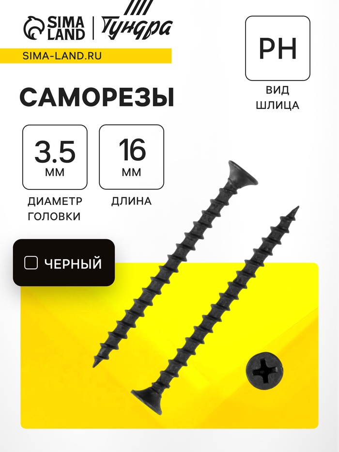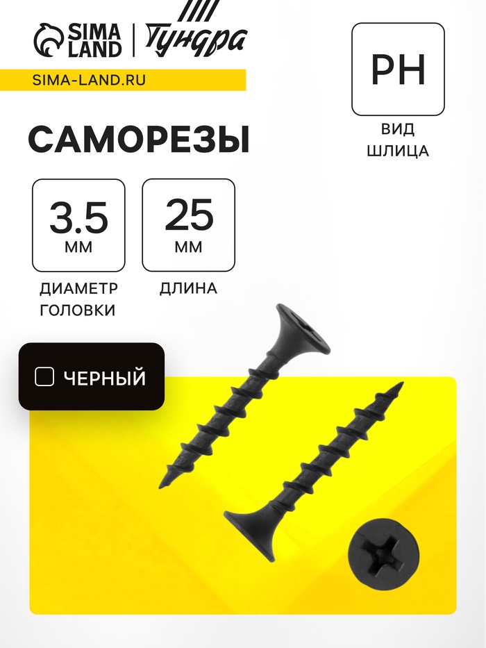 Саморез 3.5×35 мм ТУНДРА PREMIUM, потай, крупная резьба, шлиц PH, фосфатированный, 1 кг