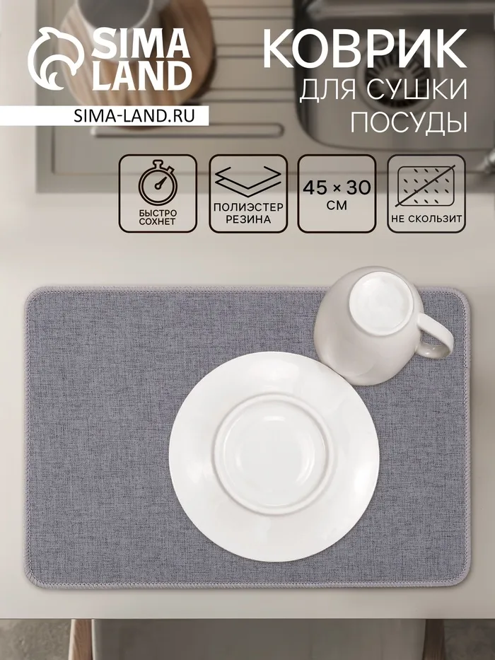 Коврик для сушки посуды Доляна Grey, 45×30 см, серый