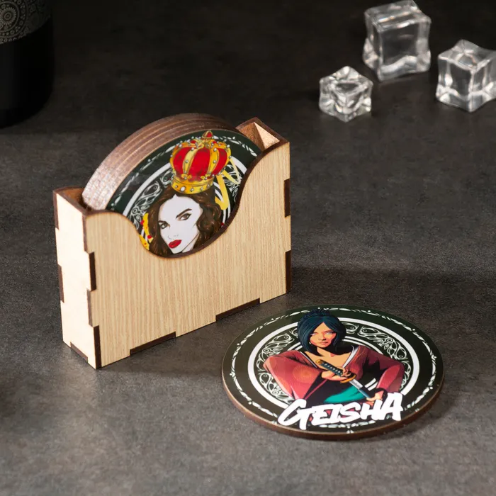 Набор подставок под горячее или бокалы в держателе, 6 шт. «Девушки», d=9 см, 9.5×9×2.5 см