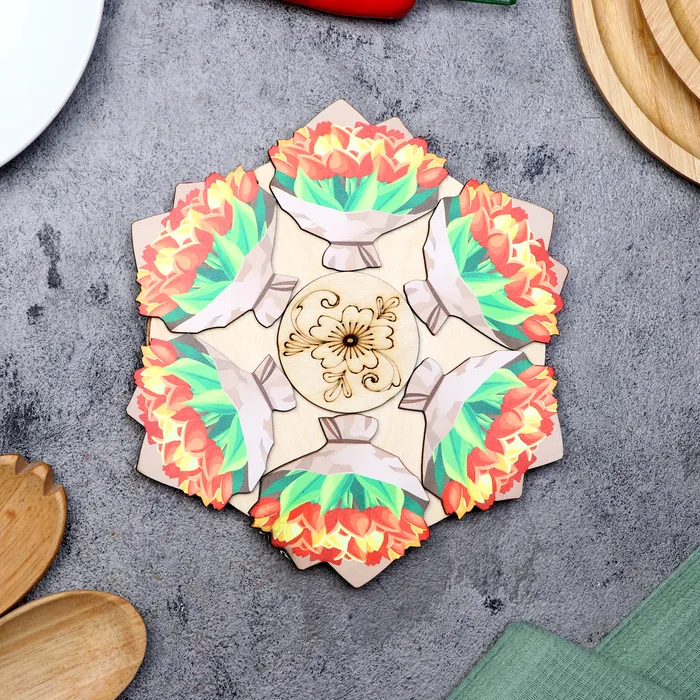 Подставка под горячее «Букет тюльпанов», d=20 см, можжевельник