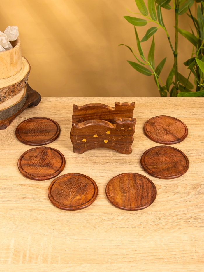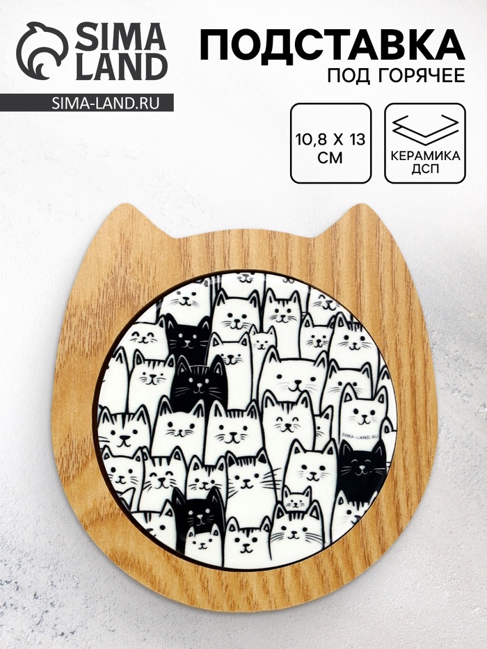 Подставка под горячее «Кошка», набор 6 шт., 11.5×13×6.5 см, дерево шишам