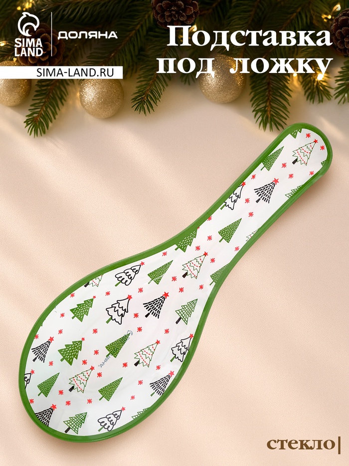 Подставка под ложку новогодняя Доляна «Сказочные истории», 21.5×7.5×1.5 см, стекло, зелёная