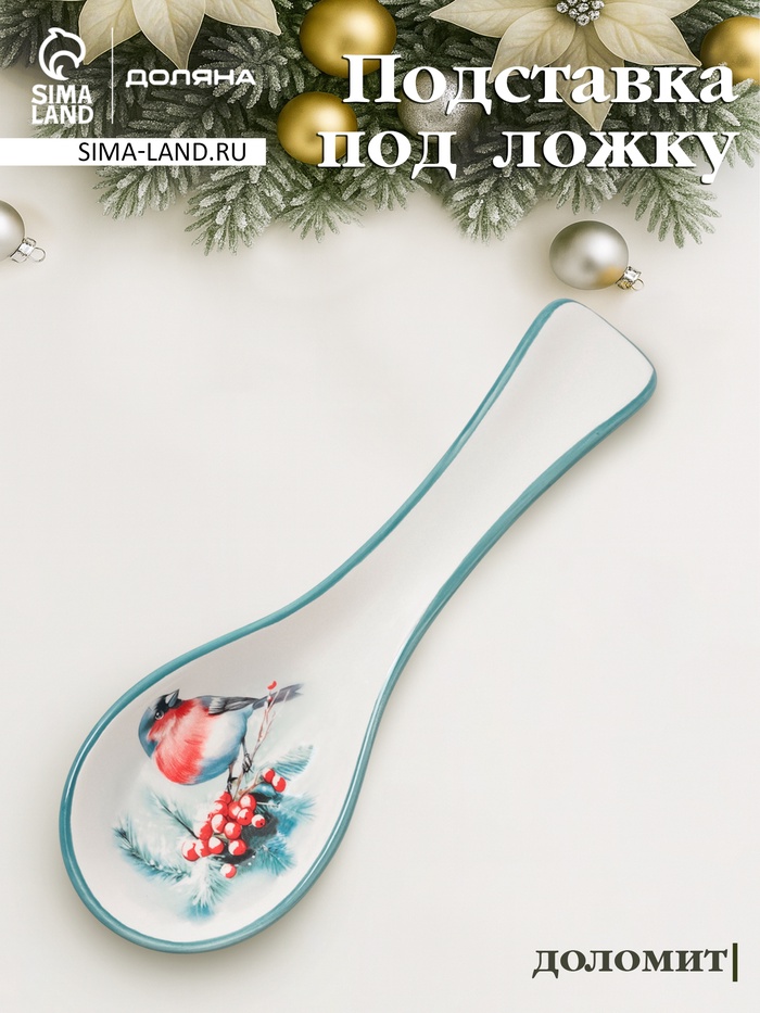 Подставка под ложку новогодняя Доляна «Сказки зимнего леса», 22.3×7.1×2.7 см, доломит, белая