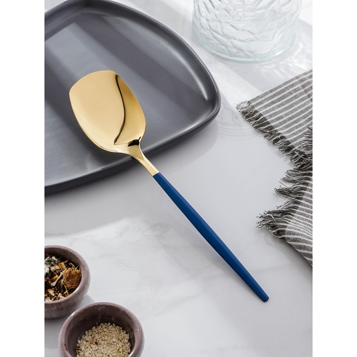 Лопатка из нержавеющей стали Magistro «Грэйс», длина 26 см, цвет ручки голубой, цвет головы золотой