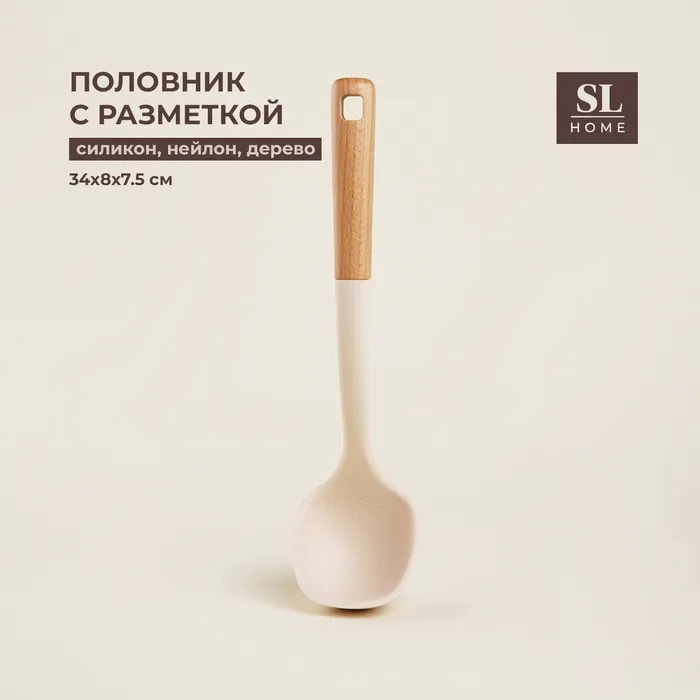 Половник SL Home, с разметкой 30/60 мл, 34×8×7.5 см, бежевый