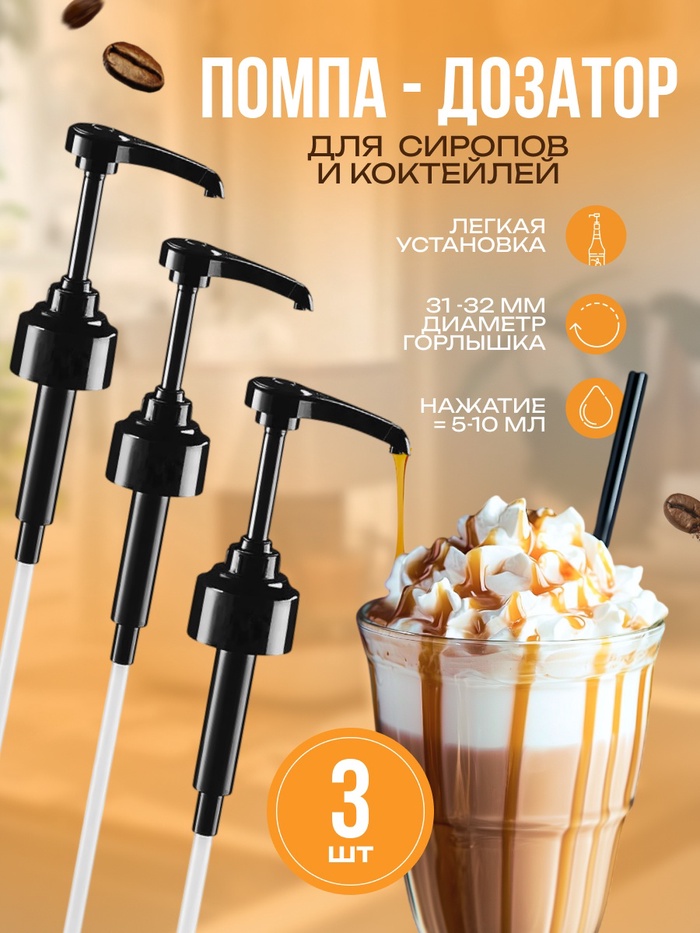 Набор помпа - дозатор для сиропа, черная, универсальная, 3 шт., (31-32 мм), 10 мл