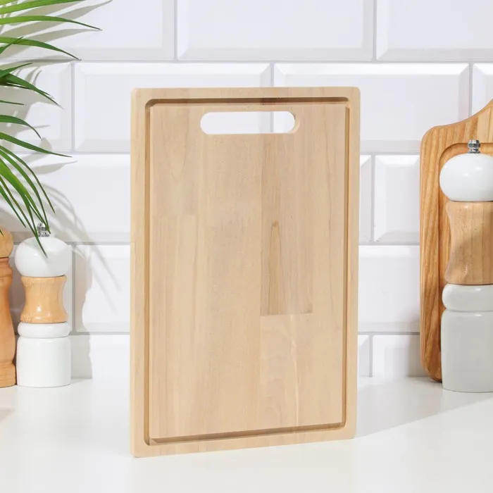Доска разделочная деревянная "Прямоугольник" с желобом 26х18х0,8 см береза