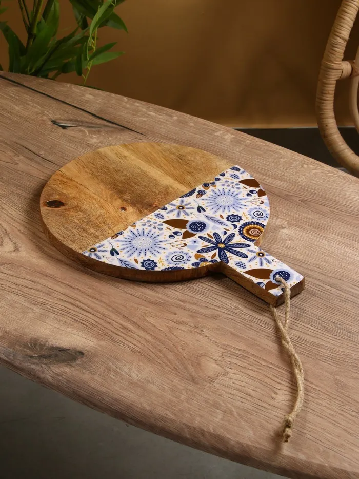Доска разделочная круглая «Васильки», 36×28 см, дерево манго